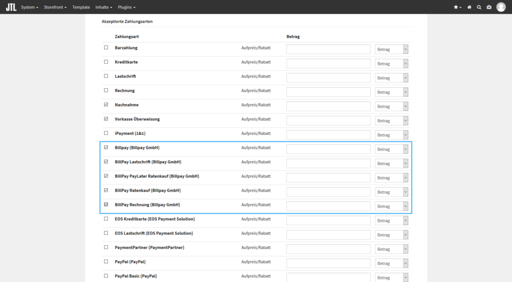 Schritt 5: BillPay in JTL-Shop aktivieren