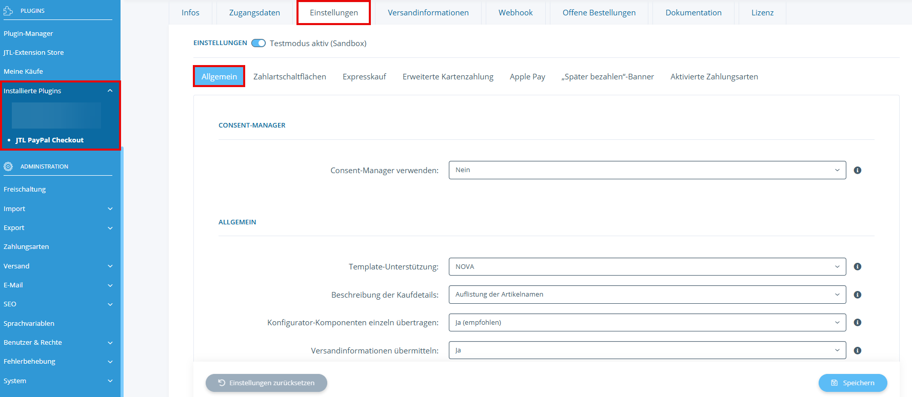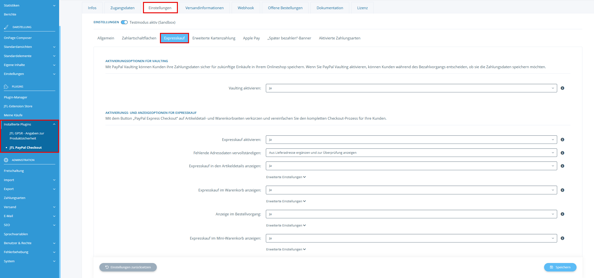 Hilfe zur Einrichtung: Über den hinterlegten Link gelangen Sie auf den Guide-Beitrag PayPal-Plugin installieren und konfigurieren.