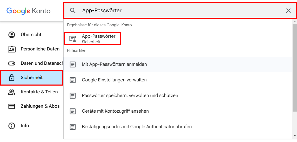 Bevor Sie die Einstellungen im Backend von JTL-Shop treffen können, müssen Sie in Ihrem Google-Konto ein App-Passwort erstellen.