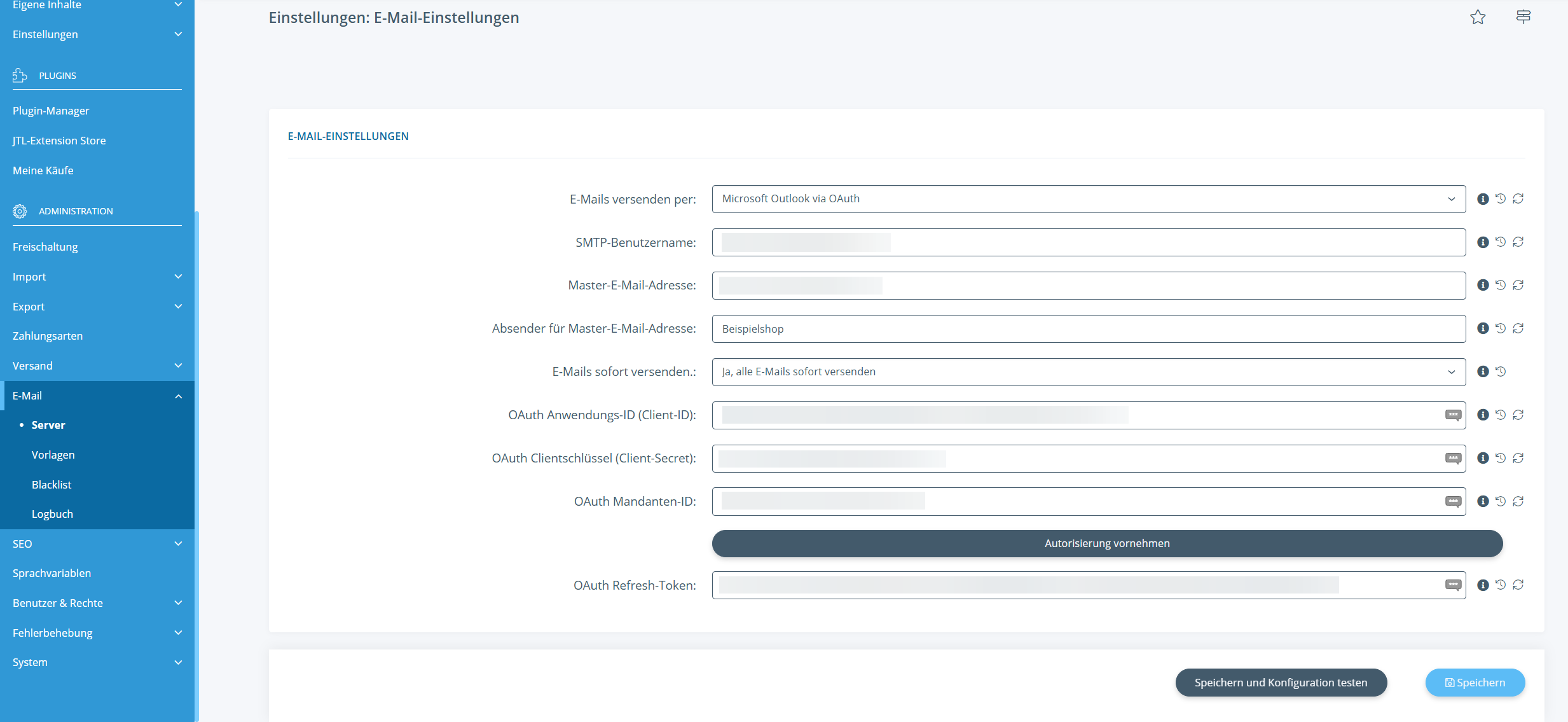Microsoft OAuth-Einstellungen in JTL-Shop treffen