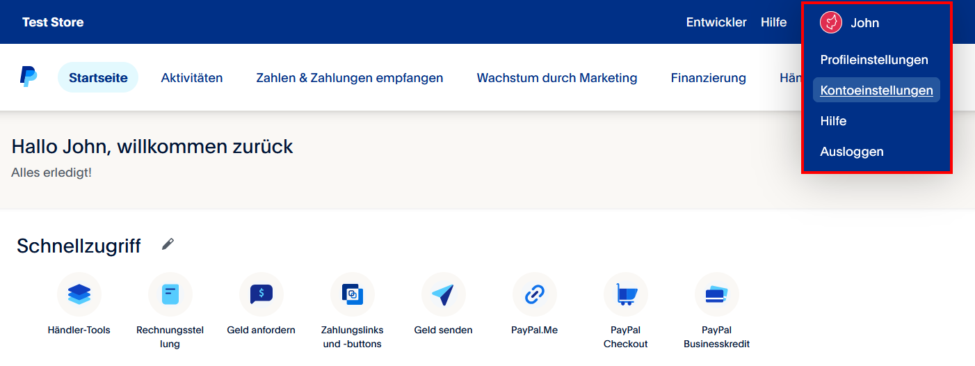 - Melden Sie sich in Ihrem PayPal-Händlerkonto an.