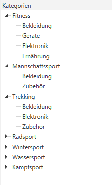 Kategorien, die Sie in JTL-Wawi angelegt haben werden im so genannten „Kategoriebaum“ angezeigt. Das folgende Bild zeigt einen Kategoriebaum: