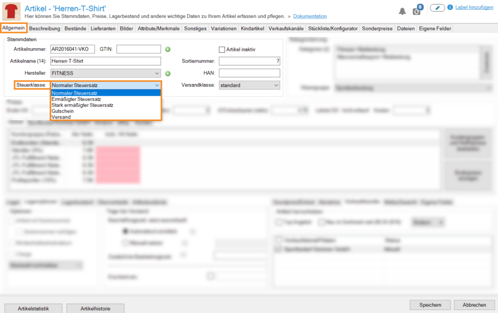 - Schließen Sie die Artikelstammdaten mit Speichern.