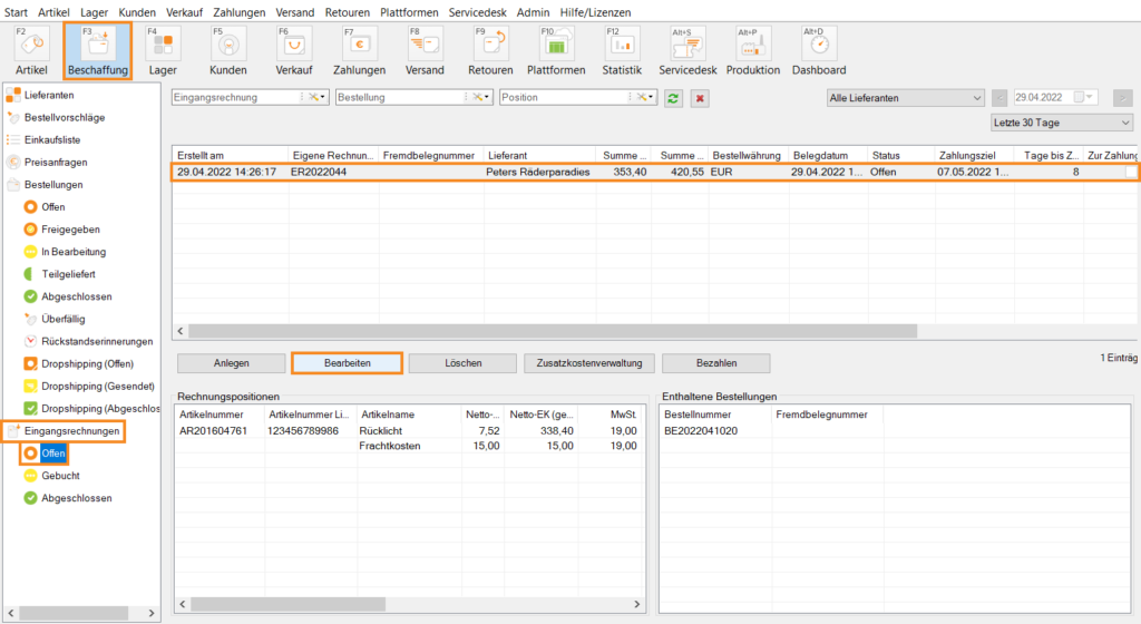 Lieferantenbestellung bezahlen