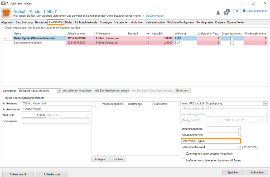 Lieferzeiten in den Artikelstammdaten festlegen