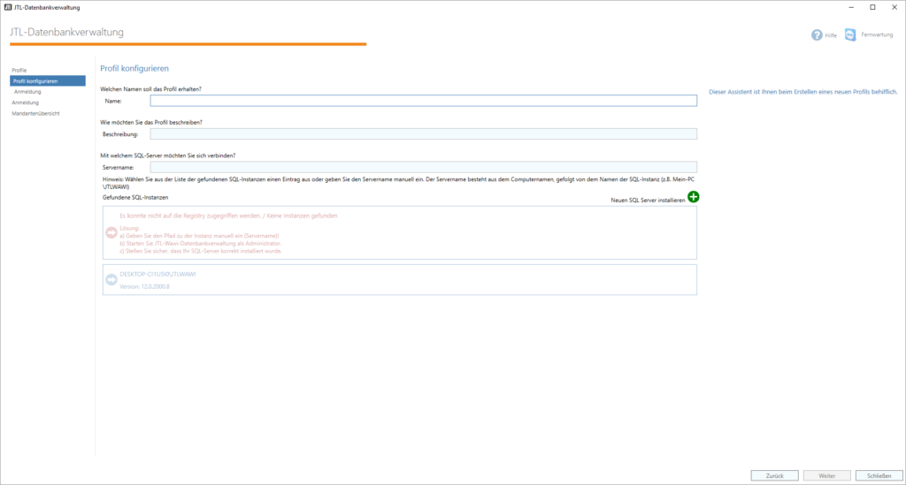 • JTLWAWI: Der Instanzname welcher bei der Installation des Datenbankservers vergeben wurde.