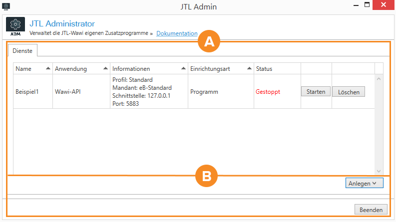 In diesem Bereich sehen Sie die Dienste, die über JTL-Administrator eingerichtet wurden.