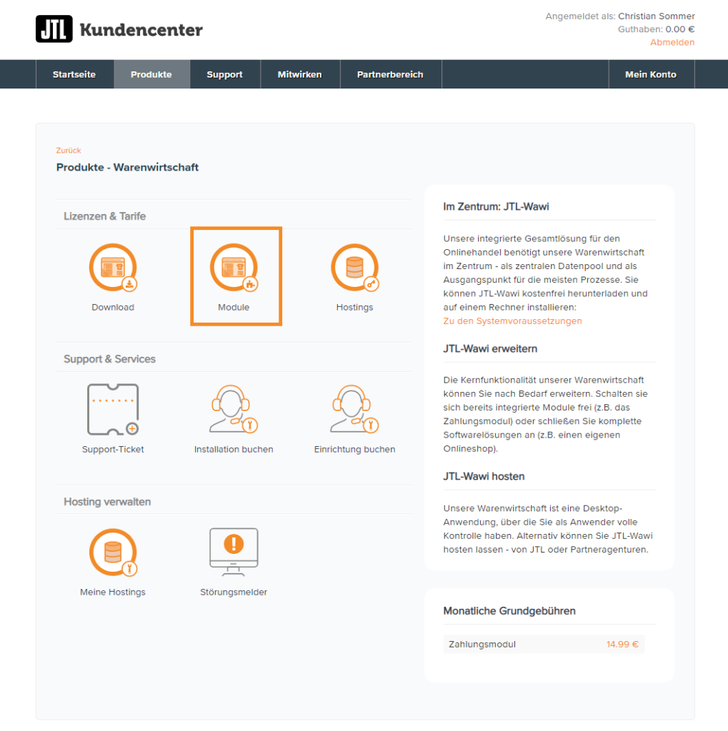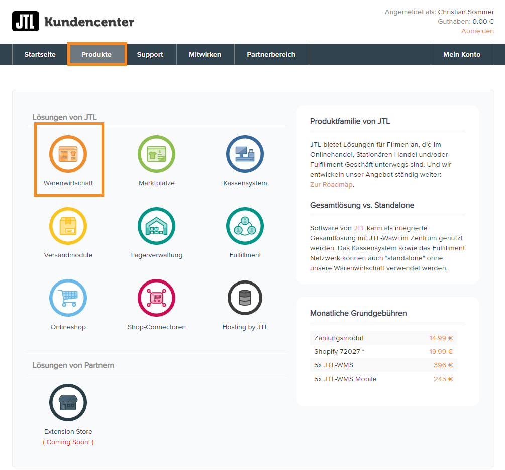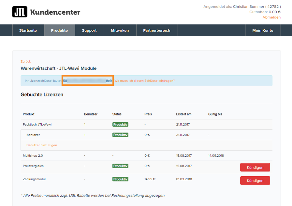 Die Lizenzen für Ihre gebuchten Produkte liegen im JTL-Kundencenter vor. Um die Lizenzinformationen aus dem JTL-Kundenkonto einzulösen, müssen Sie einen JTL-Wawi-Mandanten mit einem JTL-Kundenkonto verknüpfen.