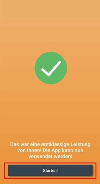 - Sobald Ihr JTL-Admin Ihre Registrierungsanfrage bestätigt, erhalten Sie eine Erfolgsmeldung. Tippen Sie auf die Schaltfläche Starten!.
