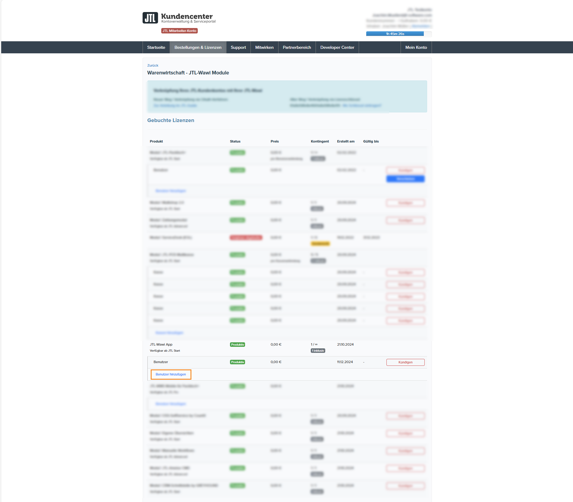 Hinweis: Beachten Sie, dass nur ab der Edition JTL Advanced Ihnen kostenlos unbegrenzte Benutzer zur Verfügung stehen.