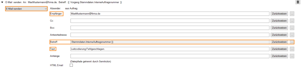 - Wählen Sie bei Vorgang: im Dropdown-Menü Leitcodierung fehlgeschlagen.