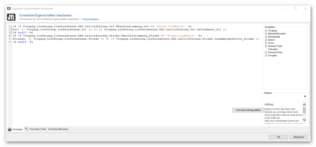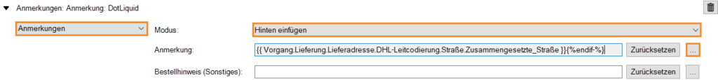 Strasse: {{ Vorgang.Lieferung.Lieferadresse.Straße }} => {{ Vorgang.Lieferung.Lieferadresse.DHL-Leitcodierung.Straße.Zusammengesetzte_Straße }}