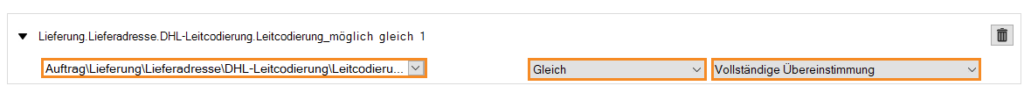 - Klicken Sie auf das linke Dropdown-Menü und wählen Sie Auftrag > Lieferung > Lieferadresse > DHL-Leitcodierung > Leitcodierung möglich.
