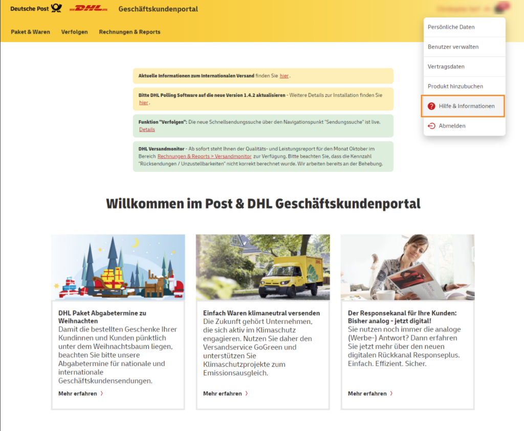 - Melden Sie sich in Ihrem DHL Geschäftskundenportal an.