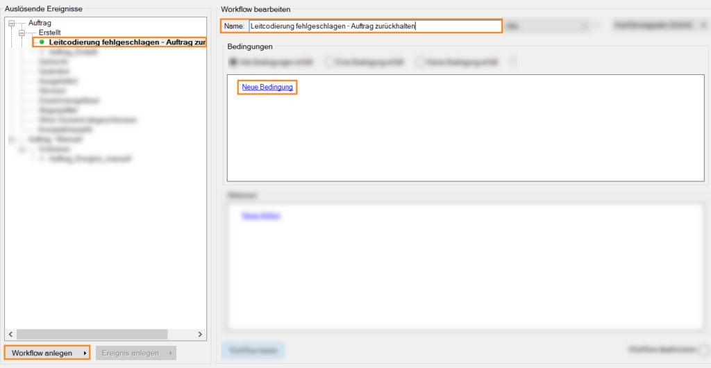 - Geben Sie dem Workflow einen aussagekräftigen Namen, in unserem Beispiel Leitcodierung fehlgeschlagen – Auftrag zurückhalten.