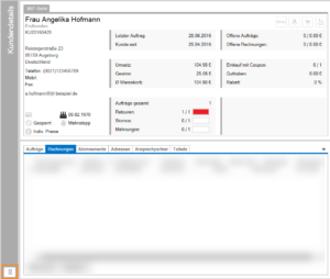 Ausdocken: Öffnet die Kundendetails in einem separaten Dialogfenster. Dieses Dialogfenster können Sie beispielsweise auf einen zusätzlichen Monitor ziehen und dort geöffnet lassen, während Sie auf dem ersten Monitor wie gewohnt weiterarbeiten.