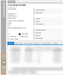 Die 360°-Sicht stellt Ihnen wichtige Kundeninformationen auf einen Blick zur Verfügung.