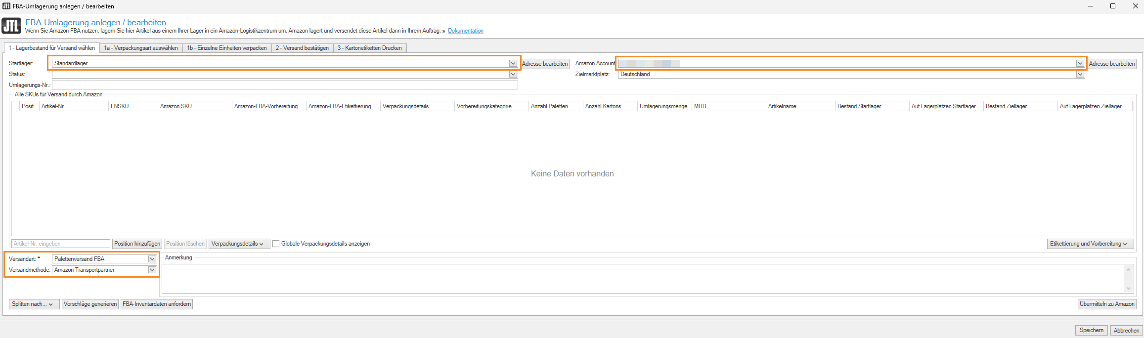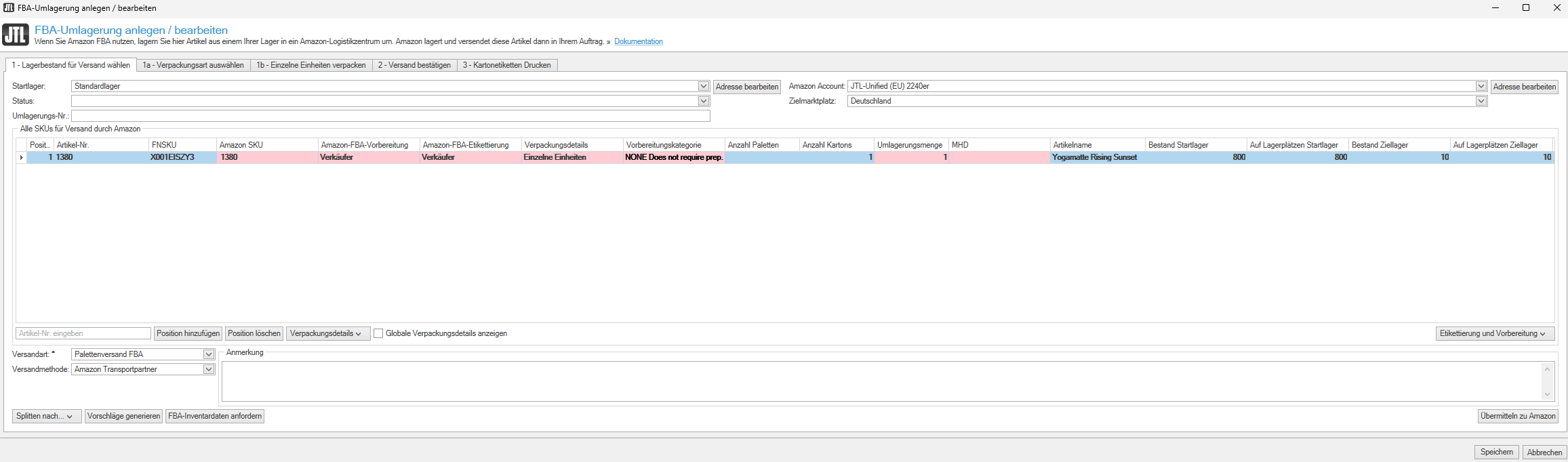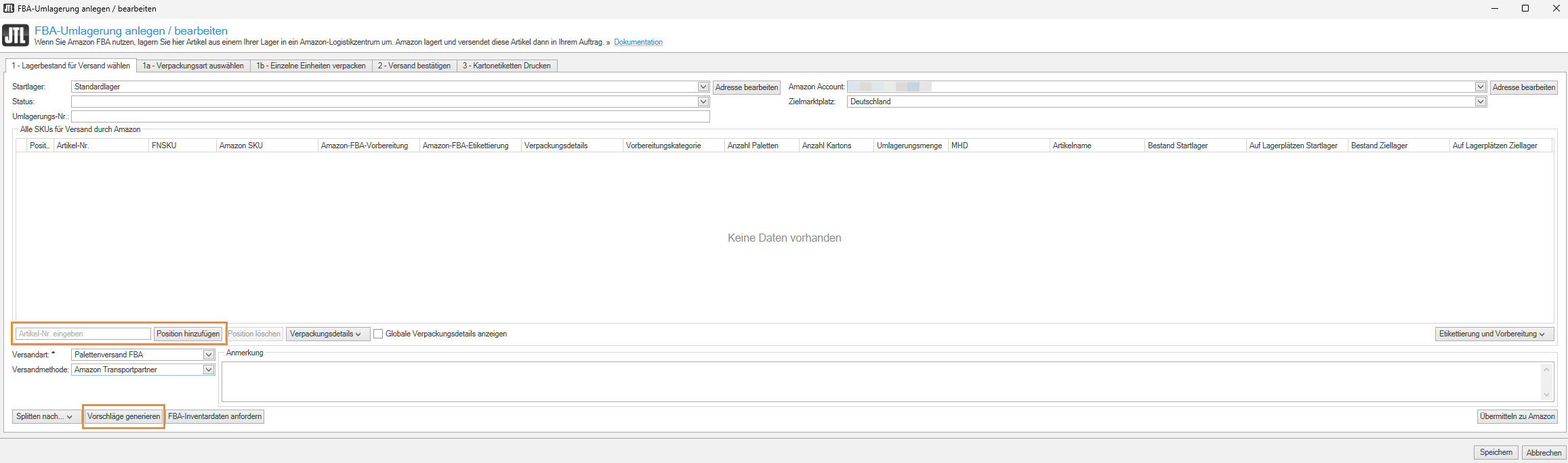 Artikel in ein FBA-Lager umlagern
