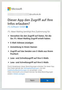 - Erlauben Sie der App den Zugriff auf Ihre Informationen indem Sie auf Ja klicken.