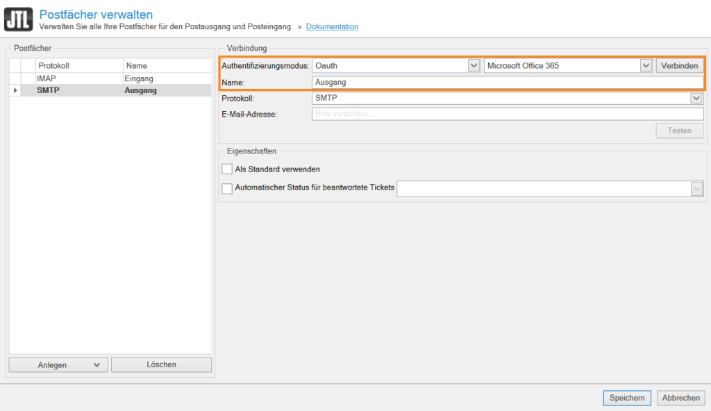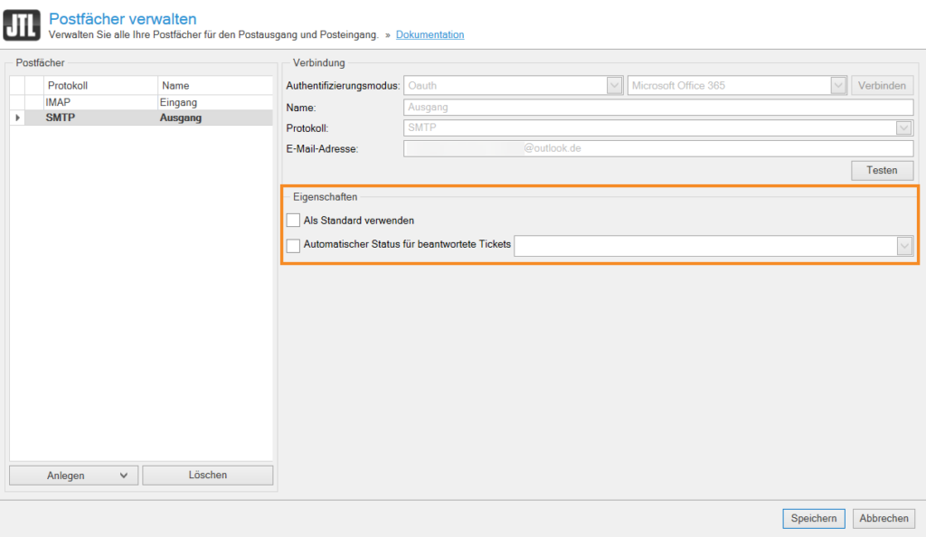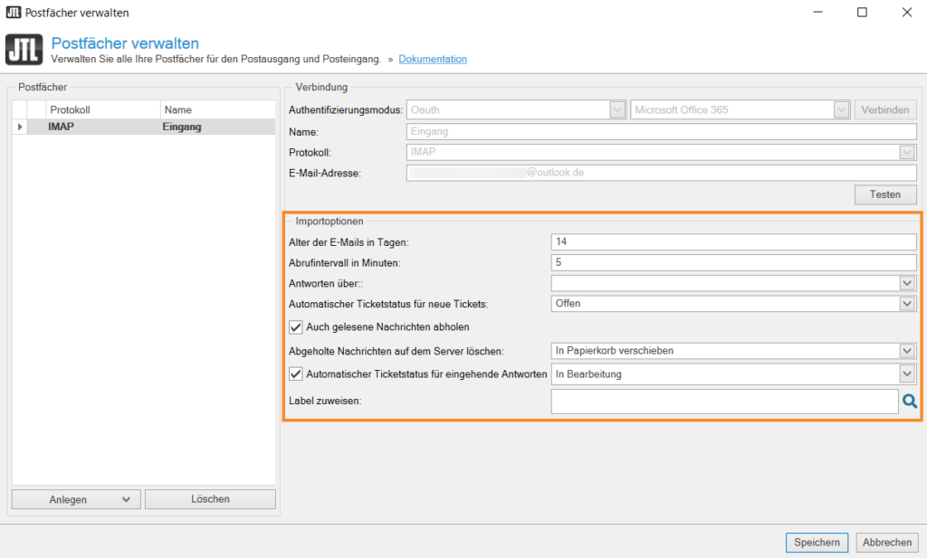 - Bestätigen Sie Ihre Angaben mit Speichern. Sie haben den Posteingang jetzt konfiguriert.