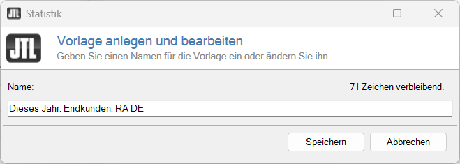 - Geben Sie einen Namen für die Auswertungsvorlage ein. Klicken Sie auf die Schaltfläche Speichern.