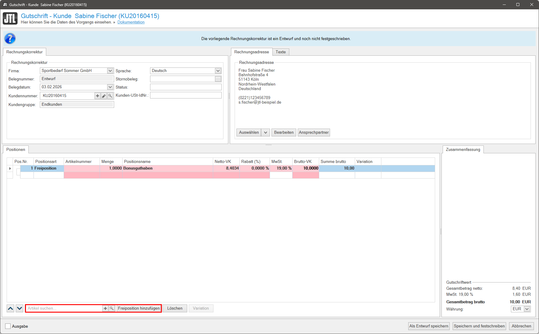 Gutschrift erstellen