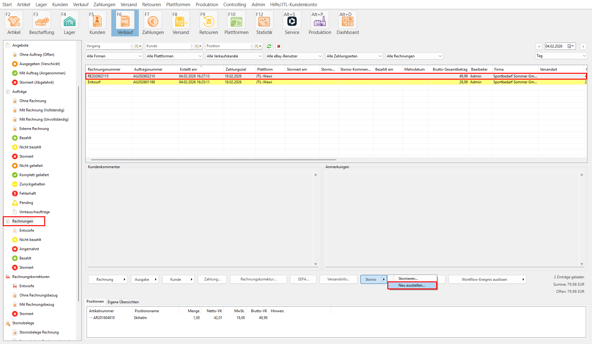 In diesem Video zeigen wir Ihnen, wie Sie in JTL-Wawi Rechnungen stornieren und neu ausstellen können.