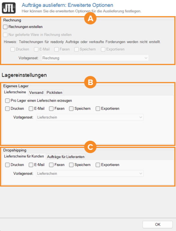 Detailbeschreibung: Aufträge ausliefern - Erweiterte Optionen