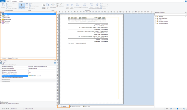 - Wechseln Sie in den Ansichtsmodus Layout. Achten Sie darauf, dass die Ebene Positionsliste angezeigt wird. Die übrigen Ebenen können Sie zur besseren Übersichtlichkeit bei Bedarf zeitweilig ausblenden.