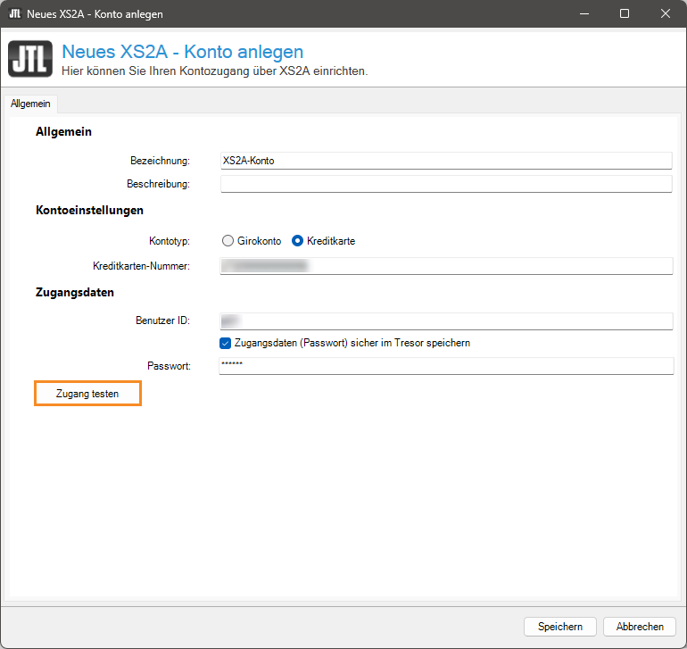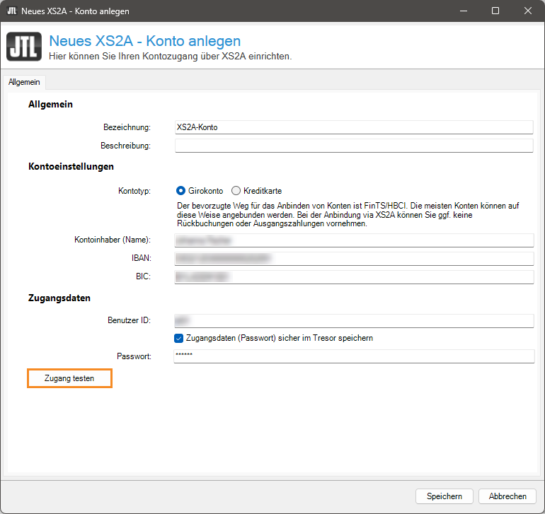 - Klicken Sie im Dialogfenster Neues XS2A-Konto anlegen auf die Schaltfläche Speichern.