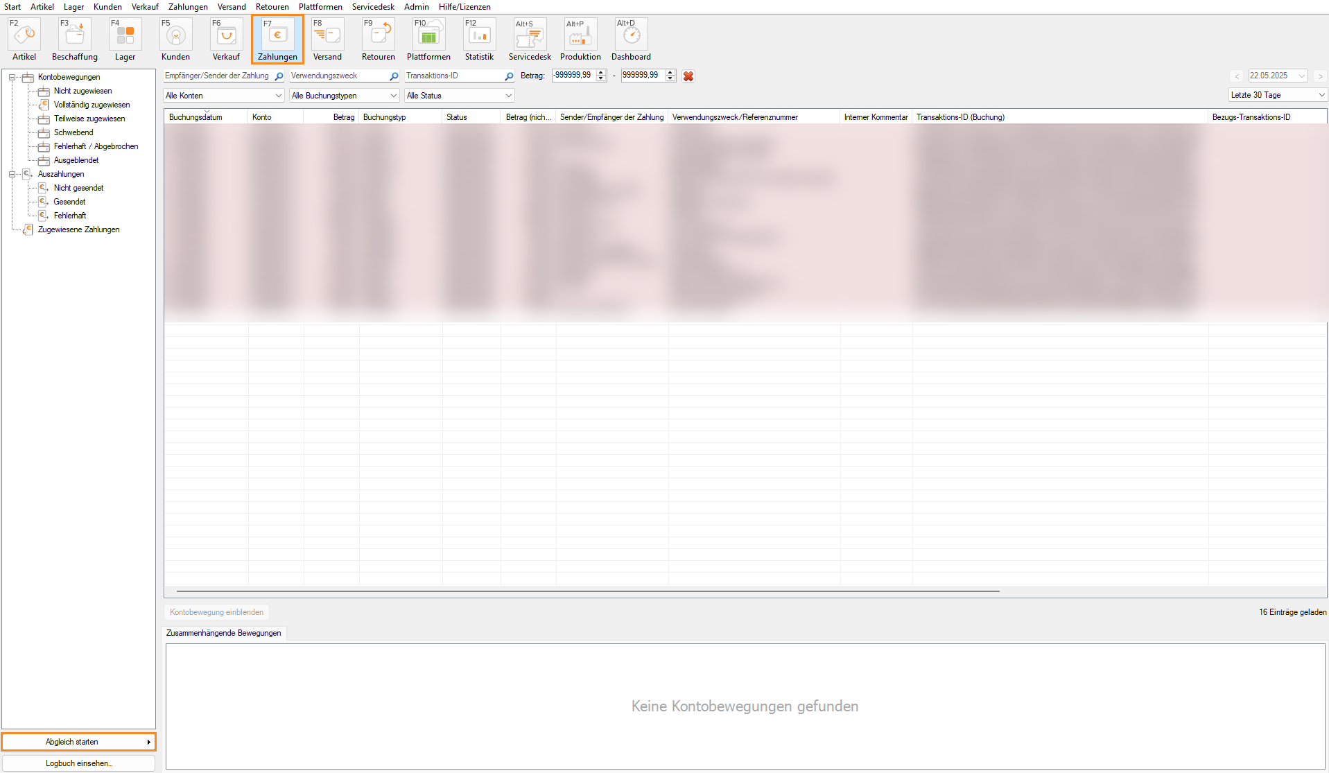 Der Benutzer hat jetzt die Berechtigung, die Passwörter zur Durchführung des Zahlungsabgleichs dauerhaft verschlüsselt aus dem Tresor zu beziehen. Der Abgleich für alle eingebundenen Bankkonten und Zahlungsanbieter wird direkt durchgeführt und die Zahlungsdaten werden in JTL-Wawi geladen. Siehe Zahlungsabgleich durchführen