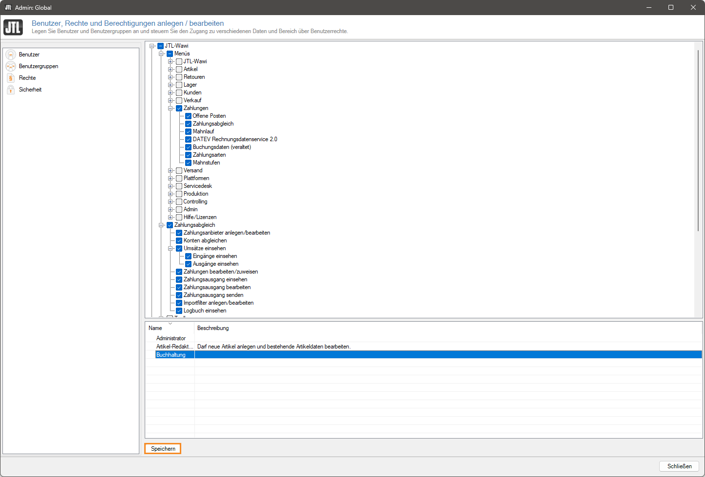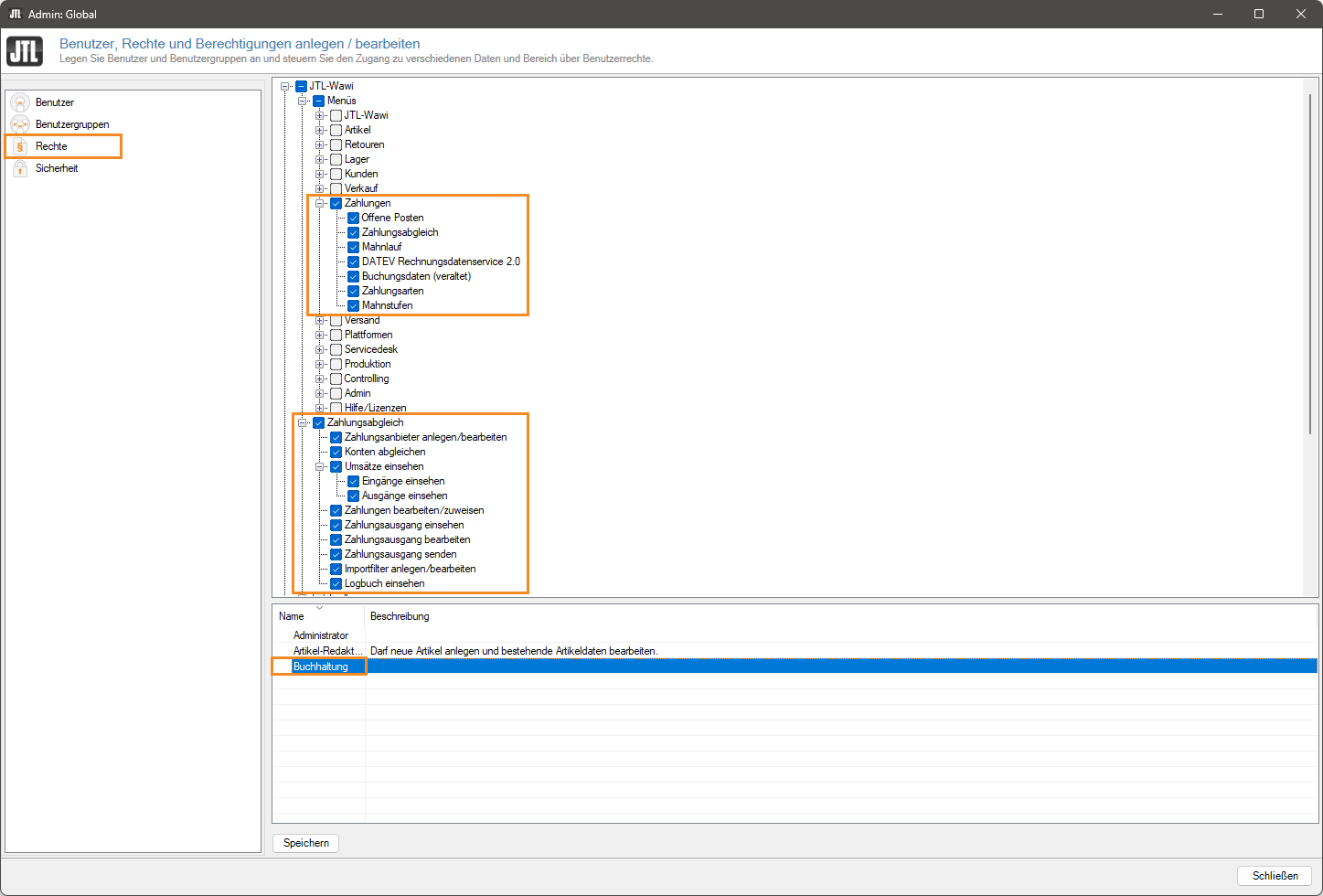 Benutzerrechte zum Zahlungsabgleich in der Rechteverwaltung vergeben