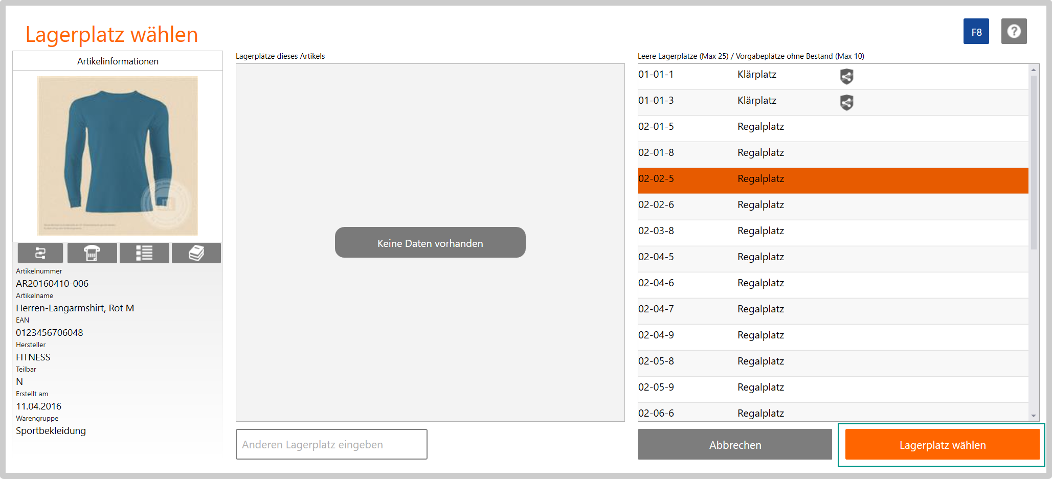 Der Lagerplatz wird fortan als Vorgabeplatz in den Artikel übernommen und bei Warenbewegungen bevorzugt angezeigt.