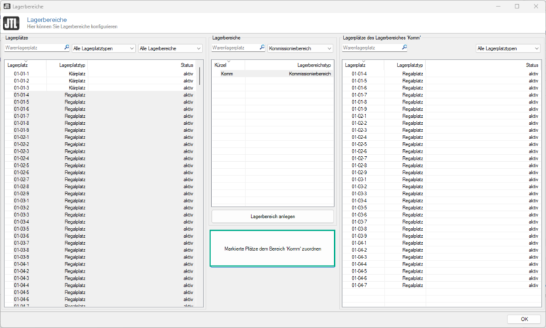 Sie haben erfolgreich zwei definierte Lagerbereiche konfiguriert.