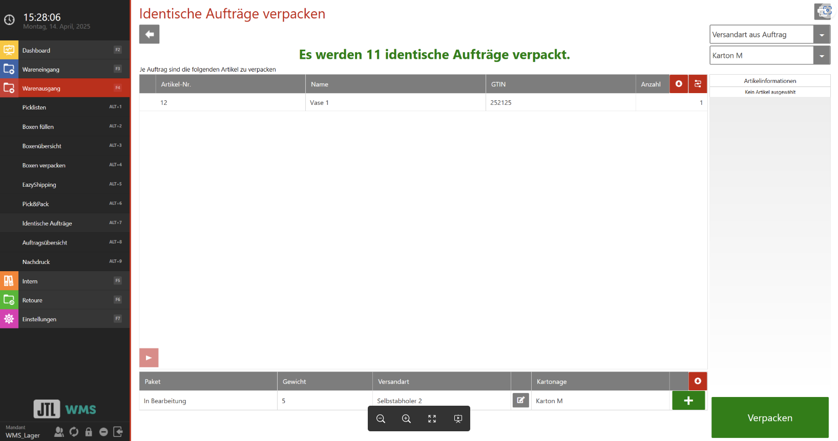 Warenausgang mit identischen Aufträgen