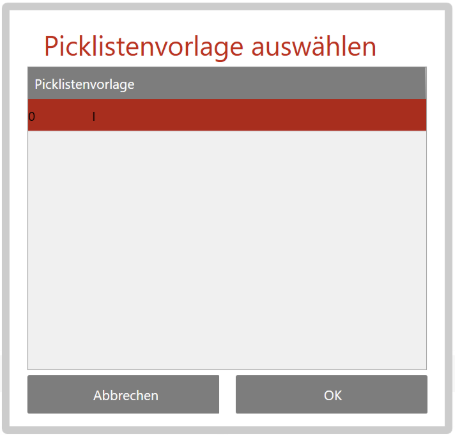 2. Wählen Sie einen Auftrag aus der Liste aus und klicken Sie auf die Schaltfläche Pickliste erstellen. Es öffnet sich das Dialogfenster Picklistenvorlage auswählen.
