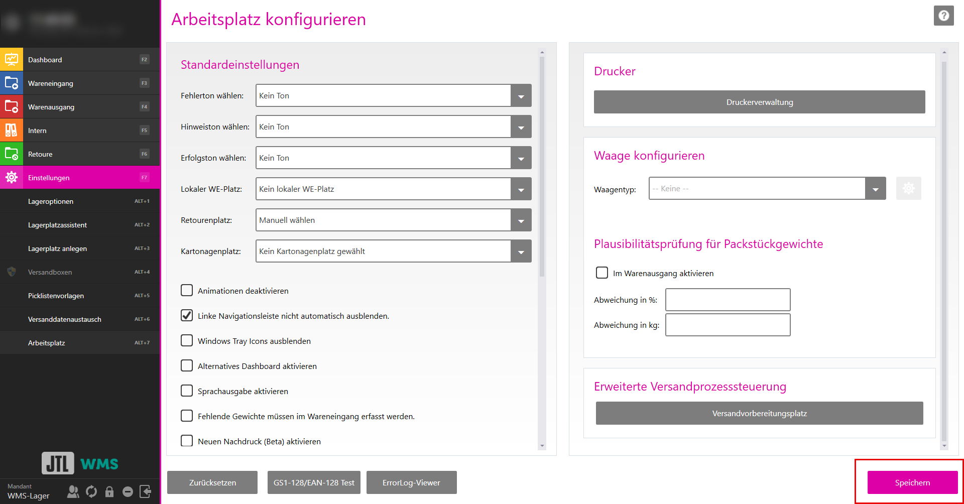 - Klicken Sie im Fenster Arbeitsplatz konfigurieren auf Speichern, um die getroffenen Einstellungen zu übernehmen.