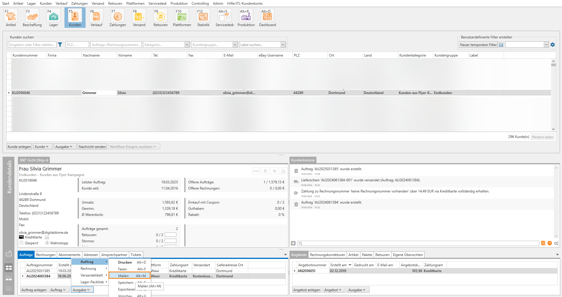 4. Rechts klicken Sie auf den erstellten Auftrag, den Sie versenden und wählen Sie Auftrag > Mailen.